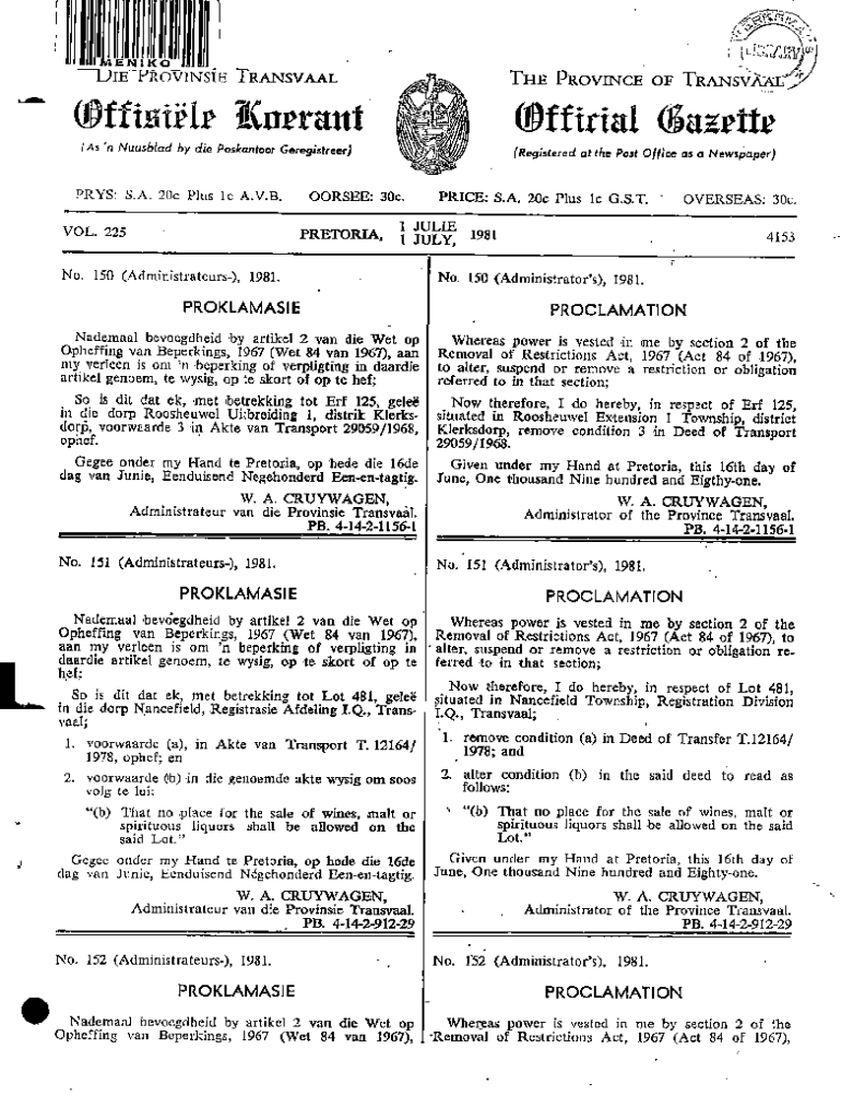 Get the free Offinirlr - Open Gazettes South Africa - archive opengazettes org