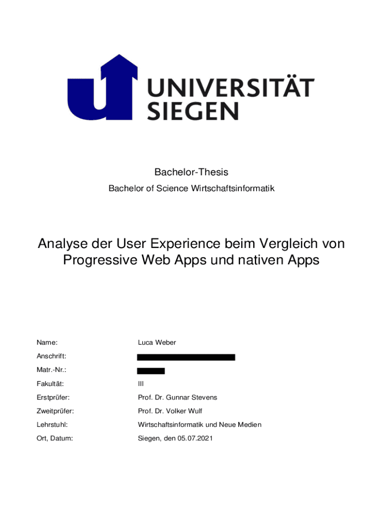 Get the free Analyse der User Experience beim Vergleich von Progressive Web ...