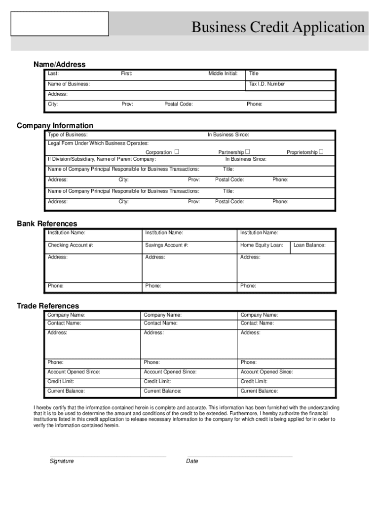 A business credit application is a form used by companies to apply for credit from a lender or supplier.