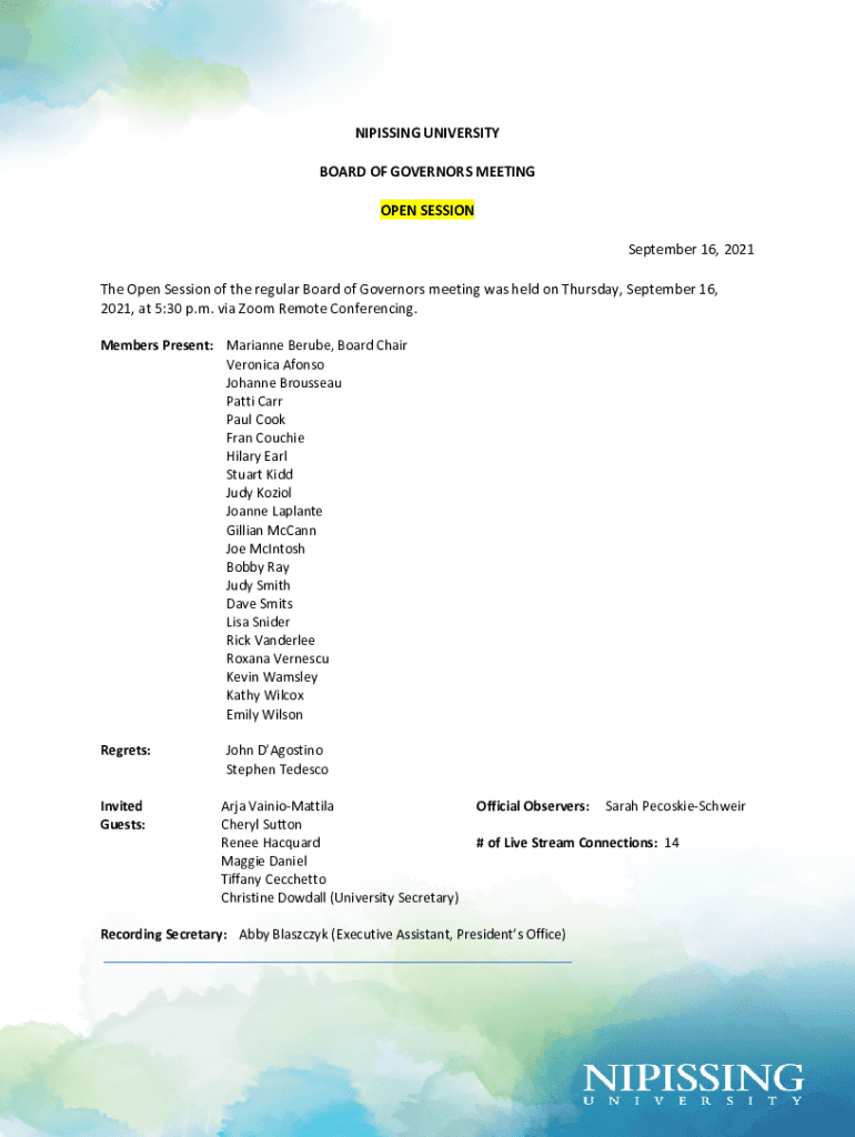 Get the free Nipissing University Board of Governors - Public appointments