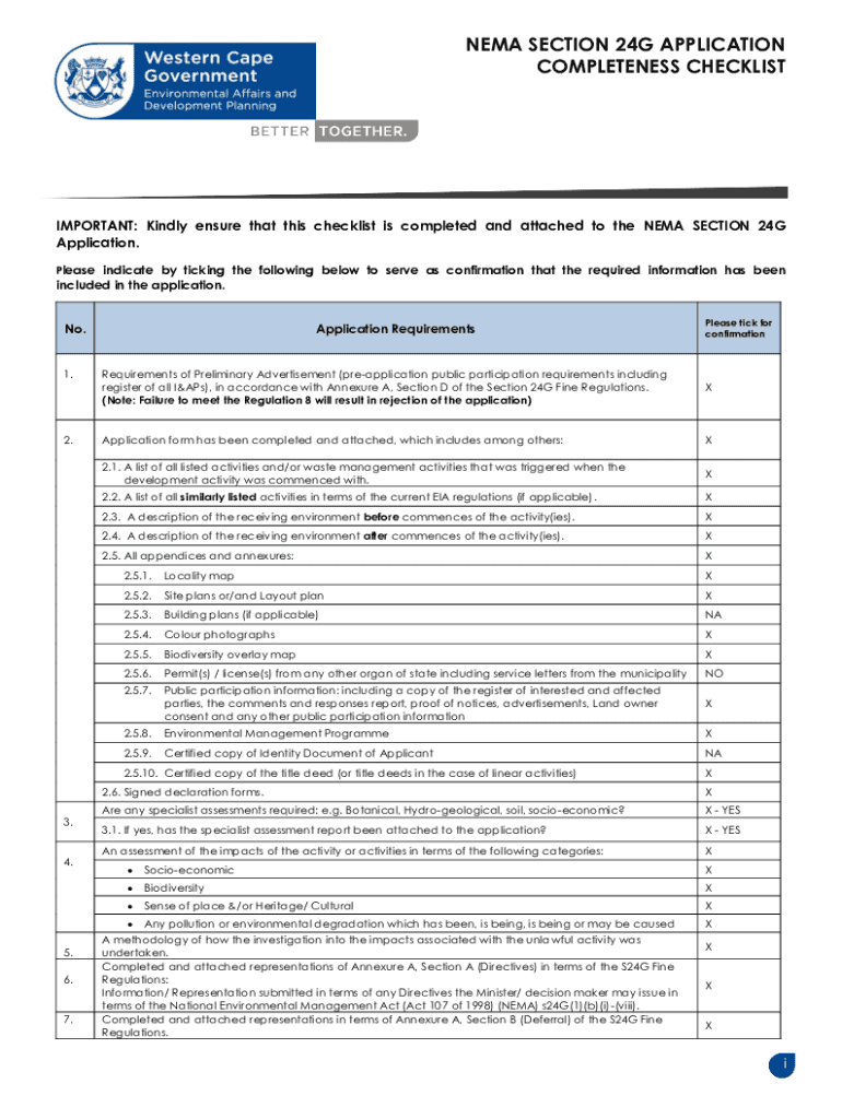 COMPLETENESS CHECKLISTIMPORTANT: Kindly ensure that this checklist is completed and attached to the NEA SECTION 24G
