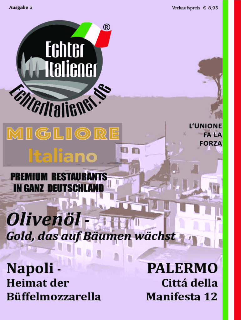 Mugabe 5Verkaufspreis 8,95Echter Italian. R nedeEchterItali e MiglioreLUNIONE FA LA FORZAItalianoPREMIUM RESTAURANTS IN GANG DEUTSCHLANDOlivenl Gold, was AUF Lumen wchstNapoli Haman her BffelmozzarellaPALERMOCitt