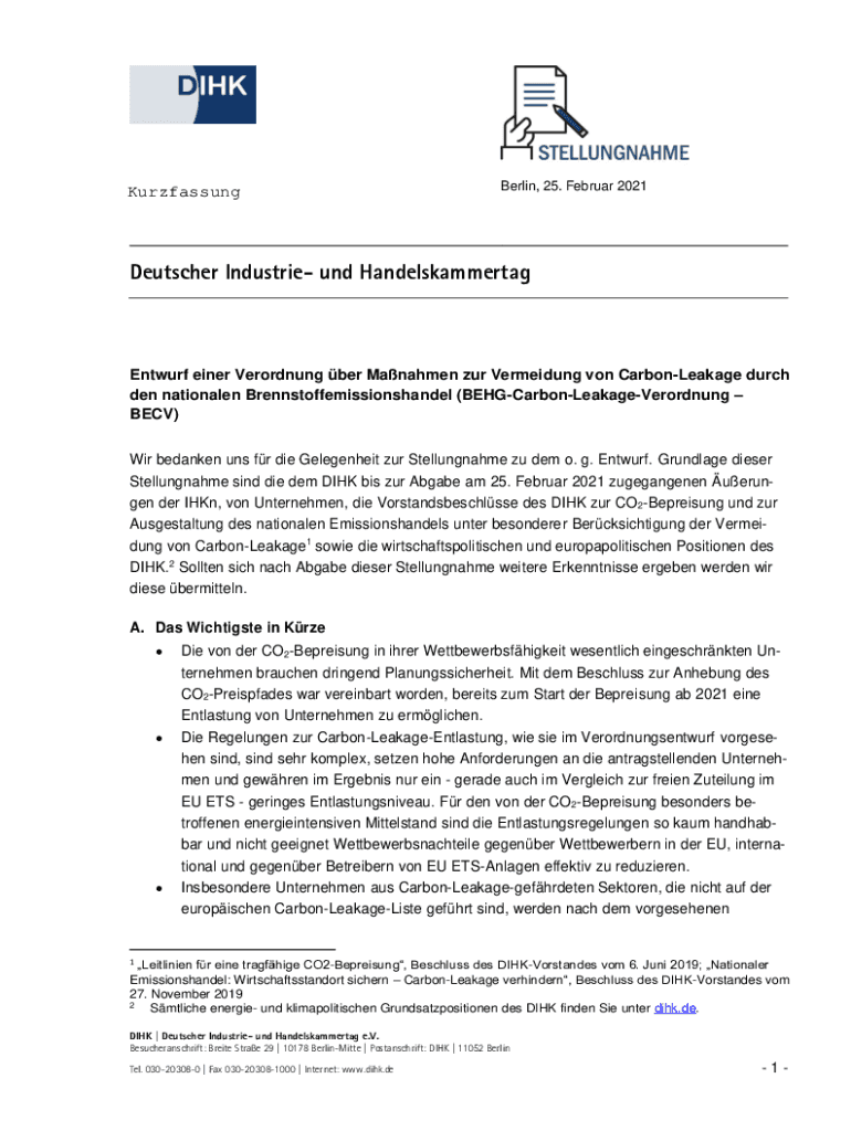 KurzfassungBerlin, 25. February 2021Deutscher Industries UND Handelskammertag