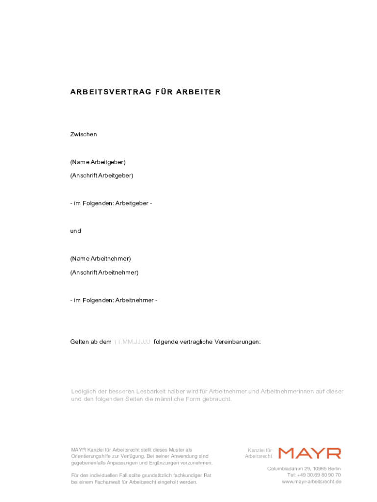 Companies in Germany who hire employees are required to use the arbeitsvertrag standard - ihk template.