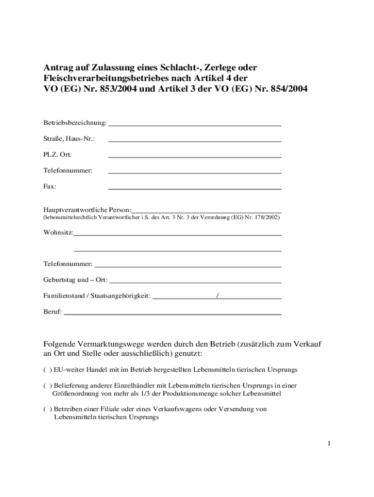 Ant rag AUF Classing lines Schlock, College Oder Fleischverarbeitungsbetriebes each Article 4 her VO (EG) NR. 853/2004 UND Article 3 her VO (EG) NR. 854/2004Betriebsbezeichnung: Straw, Haunt.: PLY,
