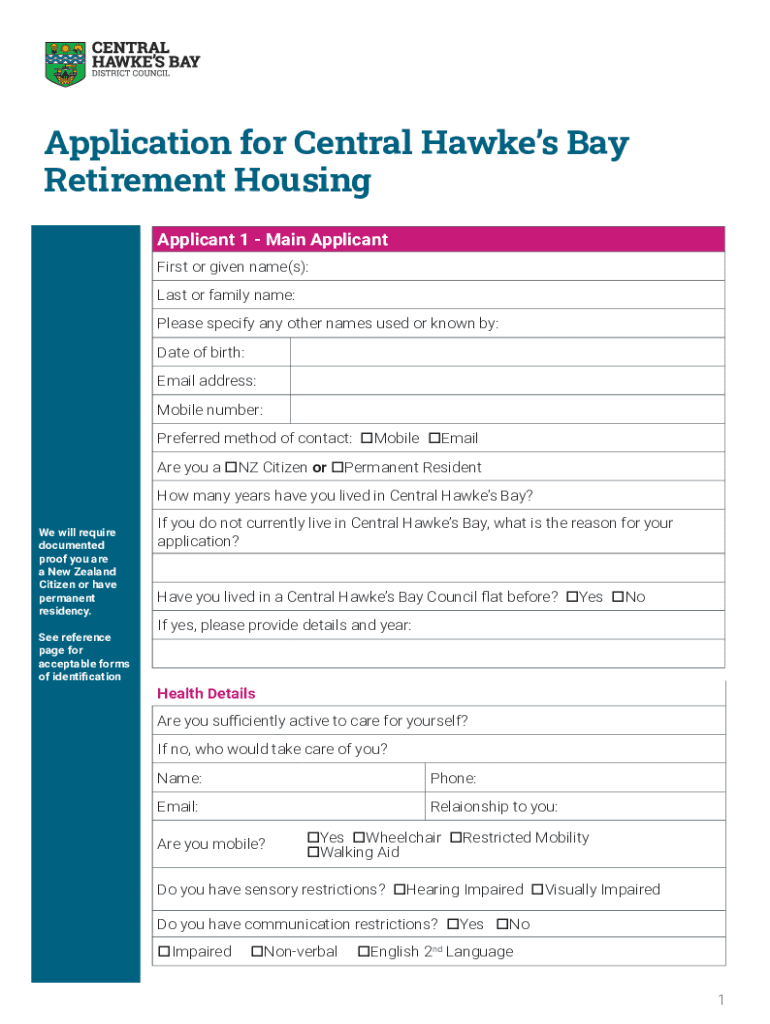 Application for Central Hawks Bay Retirement Housing 1. Please complete all questions on the application form. 2. If you require support to complete the application form, please see the reference
