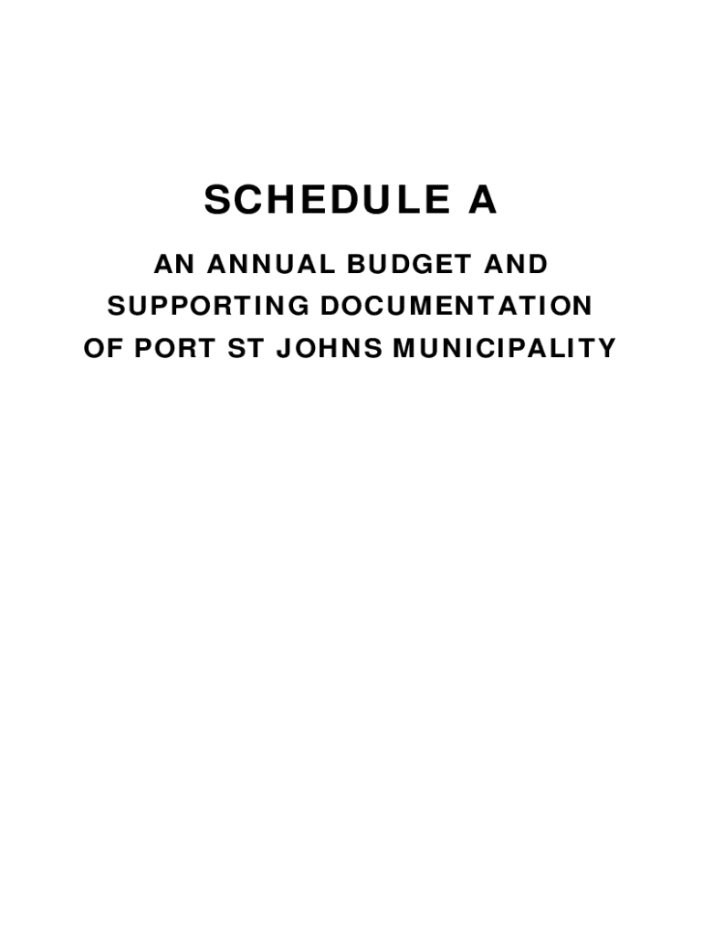 SCHEDULE A ANNUAL BUDGET AND SUPPORTING DOCUMENTATION OF PORT ST JOHNS MUNICIPALITYANNUAL BUDGET REPORT ST JOHNS MUNICIPAIITY2019/20 TO 2021/22 MEDIUM TERM REVENUE AND EXPENDITURE FORECASTSCopies