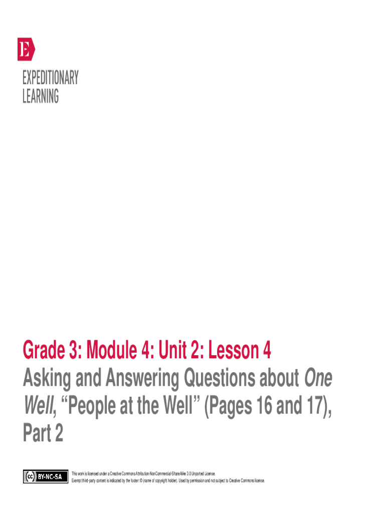 Grade 3: Module 4: Unit 2: Lesson 4 Asking and Answering Questions about One Well, People at the Well (Pages 16 and 17), Part 2 This work is licensed under a Creative Commons AttributionNonCommercialShareAlike