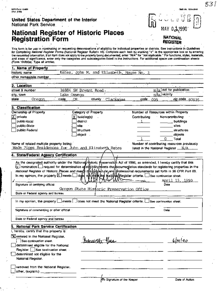 pdfFiller makes it easy to finish and sign national register of historic online. It lets you make changes to original PDF content, highlight, black out, erase, and write text anywhere on a page, legally eSign your form, and more, all from one place. Create a free account and use the web to keep track of professional documents.