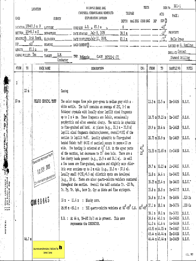 DIAMOND DRILL LOG