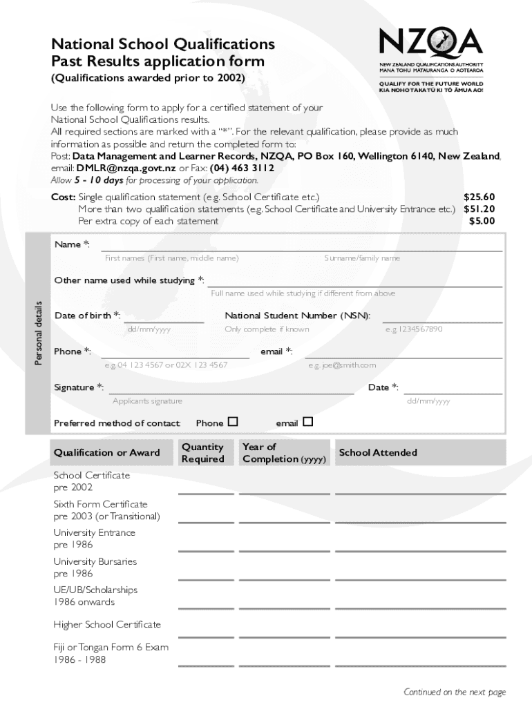 National School Qualifications Past Results application form (Qualifications awarded prior to 2002)QUALIFY FOR THE FUTURE WORLD KIA SOHO THAT I T MA AO! Use the following form to apply for a certified