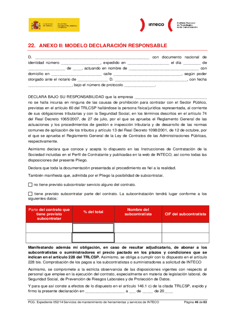 PCG. Expedient 052/14 Services de mantenimiento