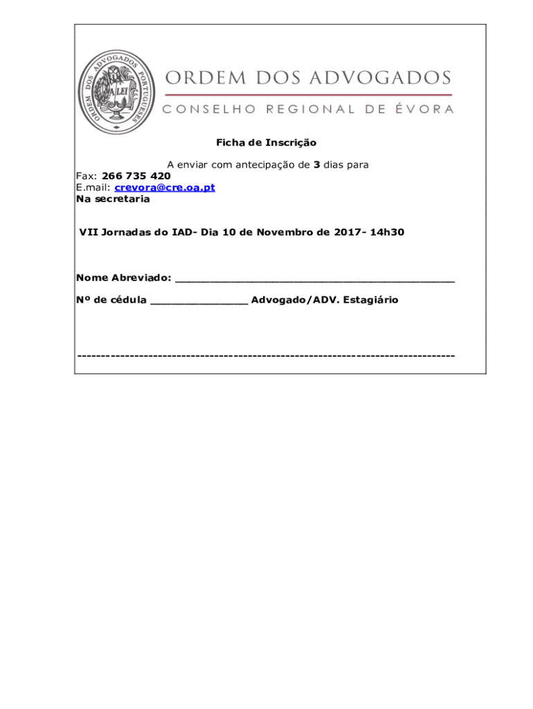 Get the free Ficha de Inscrio A enviar com antecipao de 3 dias para Fax