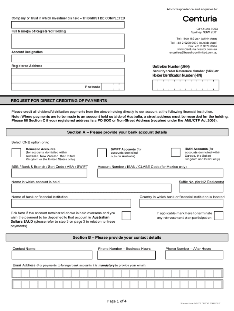 All correspondence and inquiries to:Company or Trust in which investment is held THIS MUST BE COMPLETED GPO Box 3993 Sydney NSW 2001Full Name(s) of Registered Holding: 1800 182 257 (within Must) Tel: