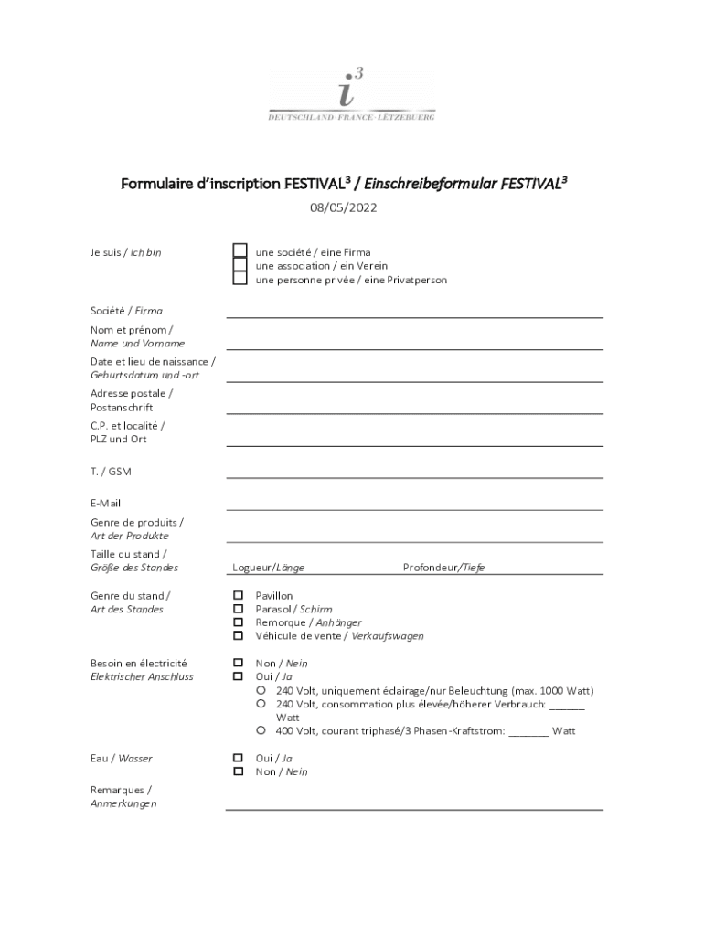 Formula ire inscription FESTIVAL3 / Einschreibeformular FESTIVAL3 08/05/2022 JE sews / ICH bin one so cit / and Firm one association / a Vain one personnel drive / and PrivatpersonSocit / Firm No