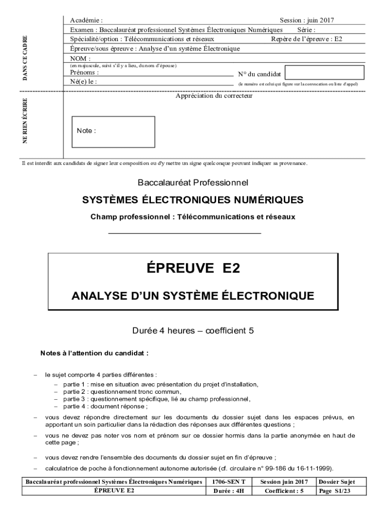Examen : Baccalaureate professional Systems lectroniques Henriques