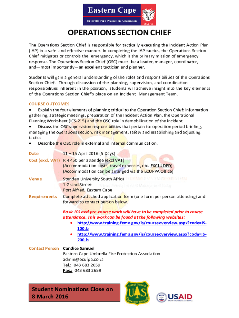 Get the free Incident Command System Operations Section Chief - Job Aid - ecufpa co