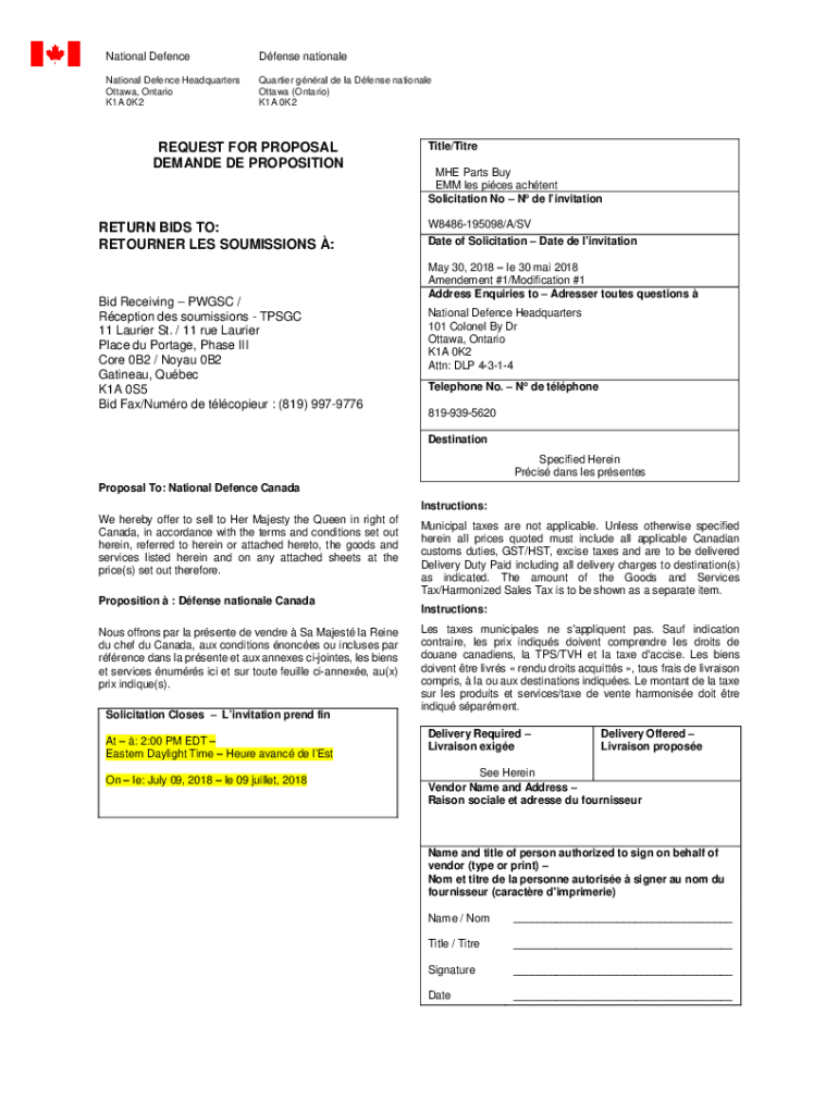 Get the free No de l'invitation W8485-237401/A Date of Solicitation