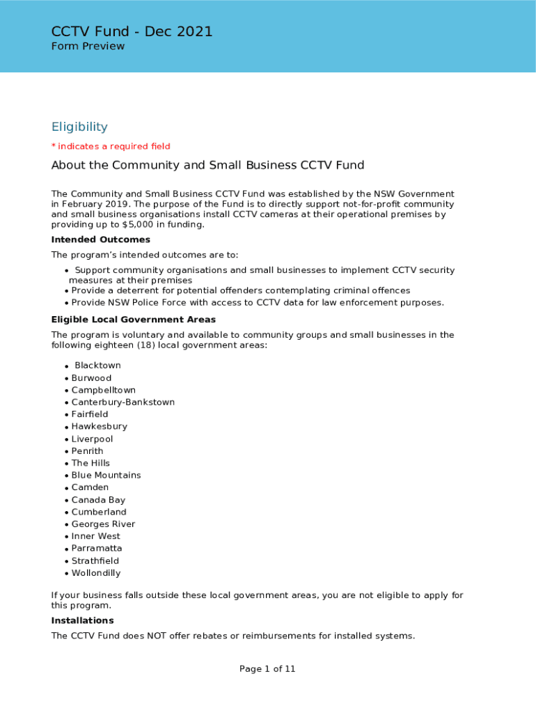 Get the free CCTV Fund Application Form - Crime Prevention NSW