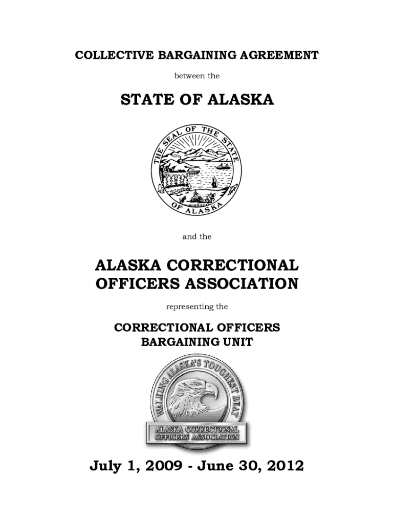 COLLECTIVE BARGAINING AGREEMENT between testate OF Alaskan Alaska CORRECTIONAL OFFICERS ASSOCIATION representing correctional OFFICERS BARGAINING UNIT July 1, 2009, June 30, 2012TABLE OF CONTENTS