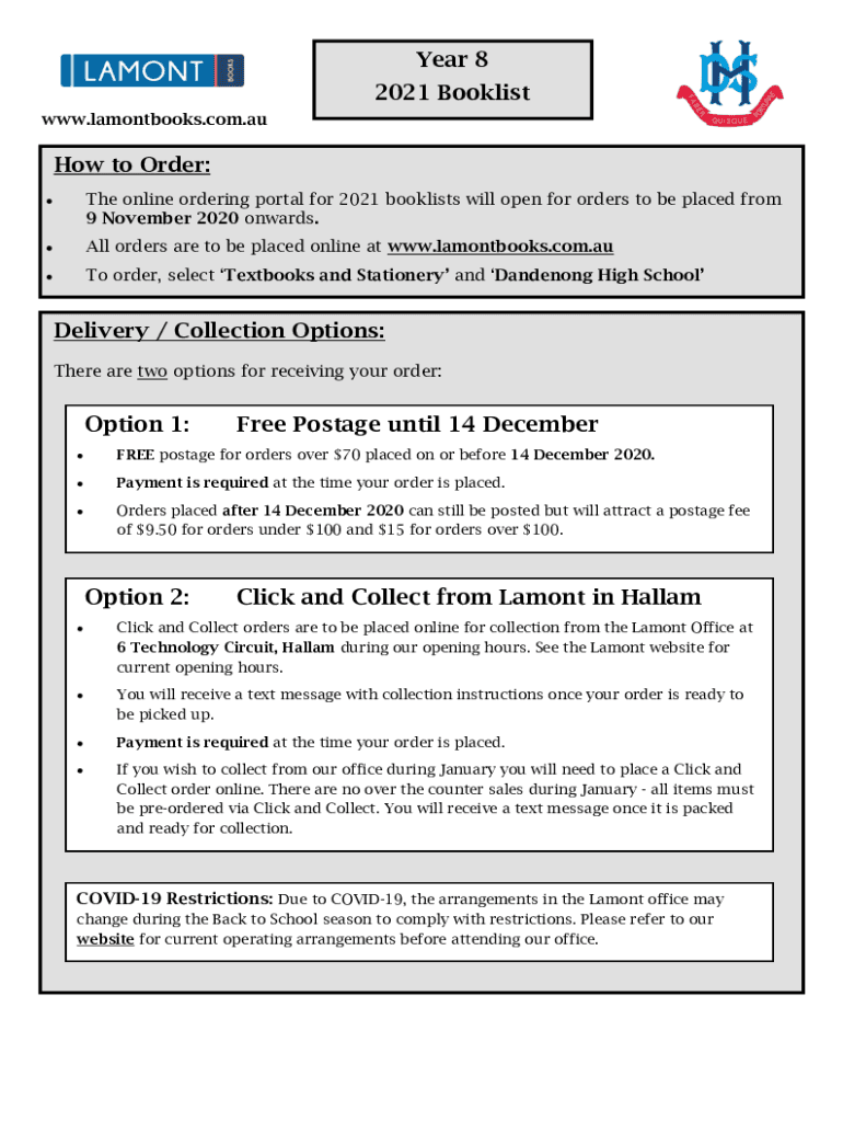 Year 82021 Book list www.lamontbooks.com.auHow to Order: The online ordering portal for 2021 book lists will open for orders to be placed from 9 November 2020 onwards. All orders are to be placed
