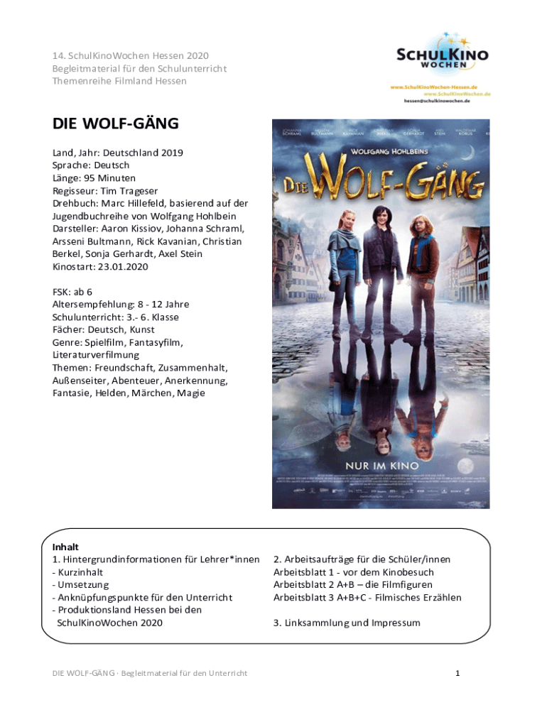 14. SchulKinoWochen Hesse 2020 Begleitmaterial for den Schulunterricht Themenreihe Film land Essence WOLFGANG Land, Jar: Deutschland 2019 Space: Deutsche LNG: 95 Minutes Régisseur: Tim Traveler Debauch: