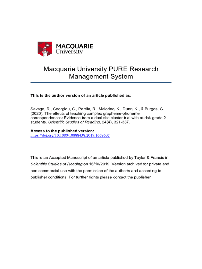 Macquarie University PURE Research Management System This is the author version of an article published as: Savage, R., Georgios, G., Partial, R., Majoring, K., Dunn, K., & Burgos, G. (2020). The