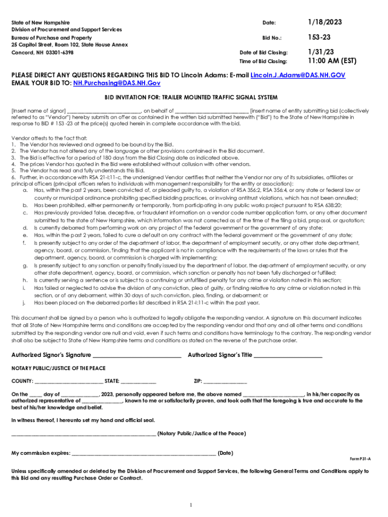 Get the free BID INVITATION FOR: TRAILER MOUNTED TRAFFIC SIGNAL SYSTEM