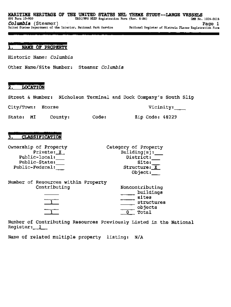 MARITIME HERITAGE OF THE UNITED STATES NHL THEME STUDYLARGE VESSELS NFS Form 10900USDI/NPS CNRHP Registration Form (Rev. 886)0 MB No. 10240018Columbia (Steamer)Page 1United States Department of the
