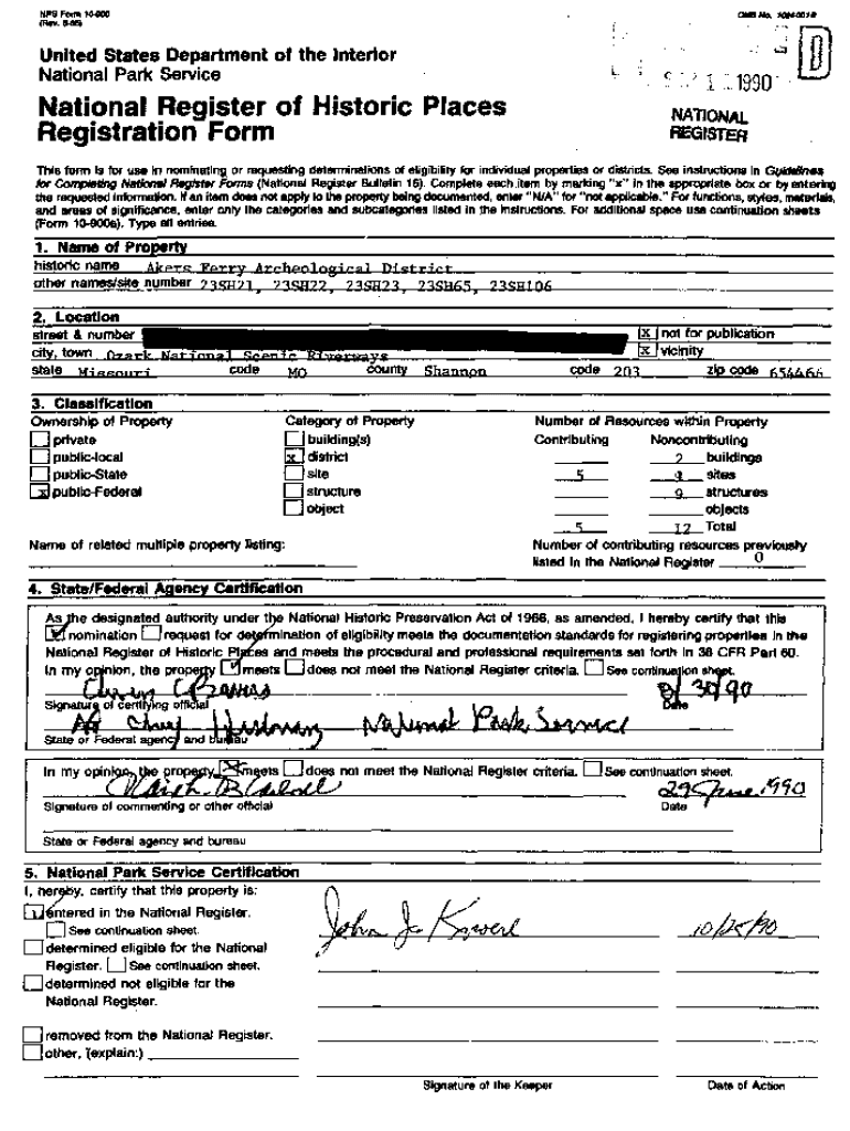 OUGHT.NPS Form 1O* (R. M6United States Department of the Interior National Park Service: 111990National Register of Historic Places Registration Formation Registers form is for use in nominating or
