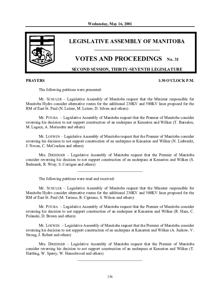 Get the free VOTES AND PROCEEDINGS No. 31 - Province of Manitoba