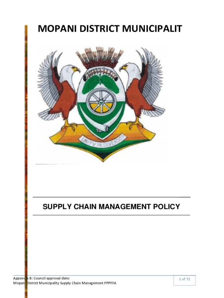 MOP ANI DISTRICT MUNICIPALIT___SUPPLY CHAIN MANAGEMENT POLICY ___Appendix B: Council approval date: Moran District Municipality Supply Chain Management PPPFFA1 of 71Mopani District Municipalities