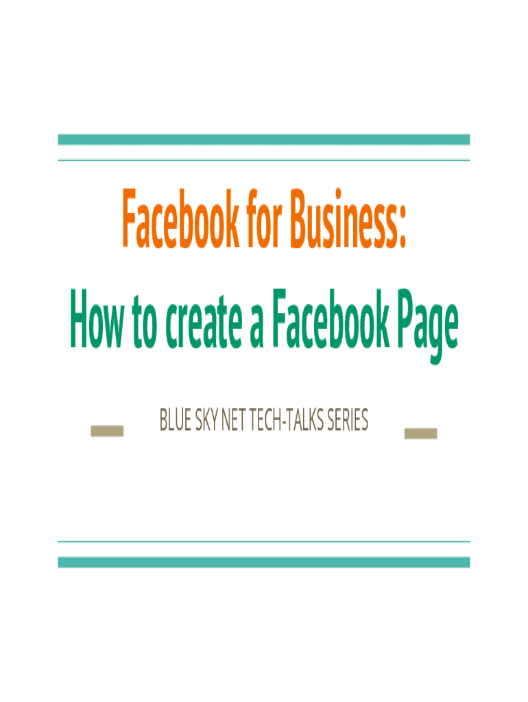 Facebook for Business: How to create a Facebook Page BLUE SKY NET RECITALS SERIESTOPICS COVERED Why does Facebook matter? What is the difference between a Facebook profile and a Facebook page? Creating