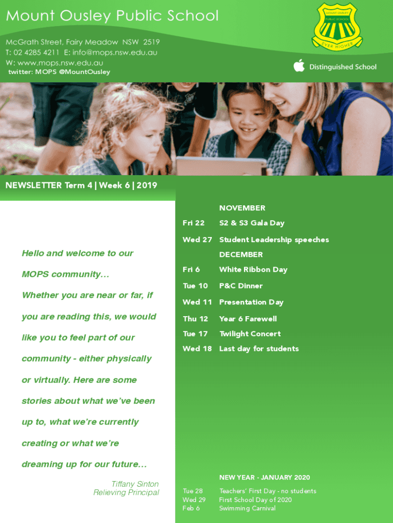 Twitter: MOPS @MountOusleyNEWSLETTER Term 4 | Week 6 | 2019