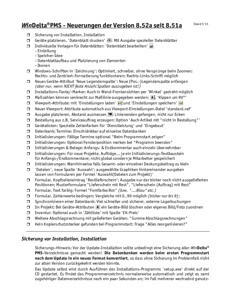 Get the free WinDeltaPMS - Neuerungen der Version 8.52a seit 8.51a