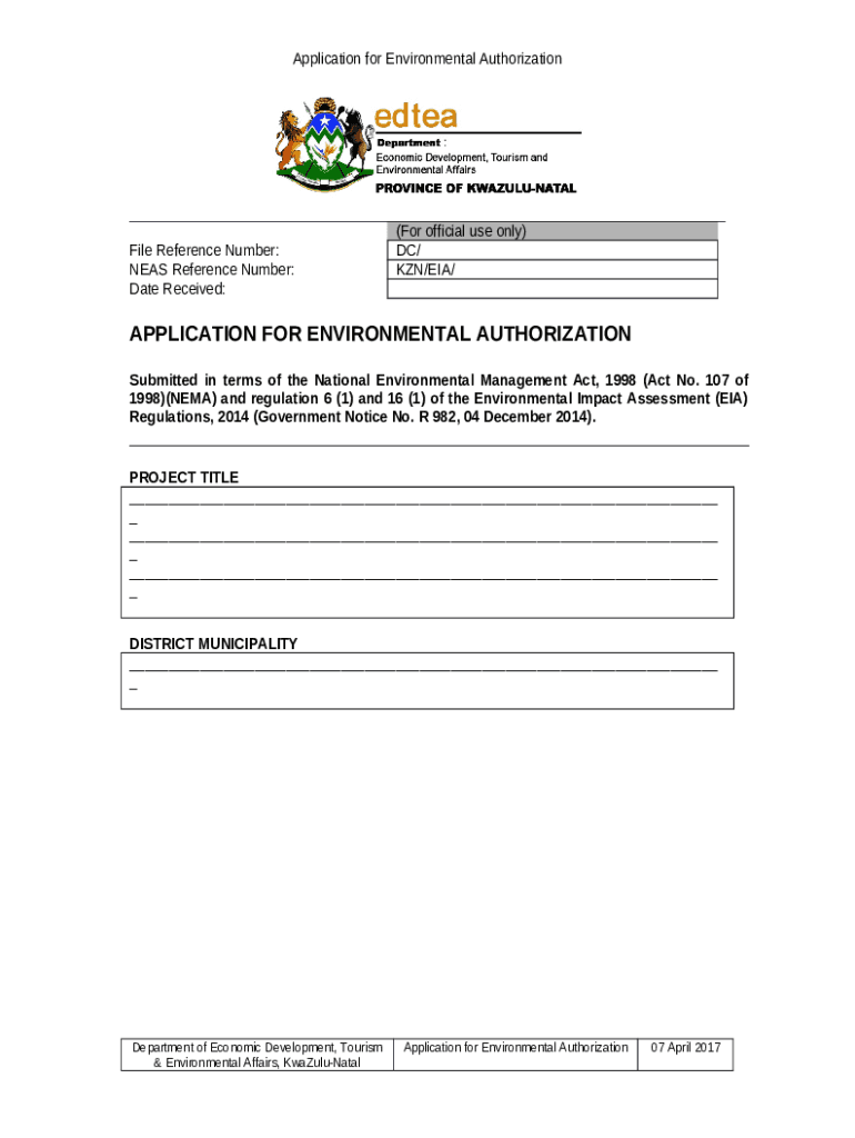 Frequently asked questions about Application for authorization - Environmental Affairs template