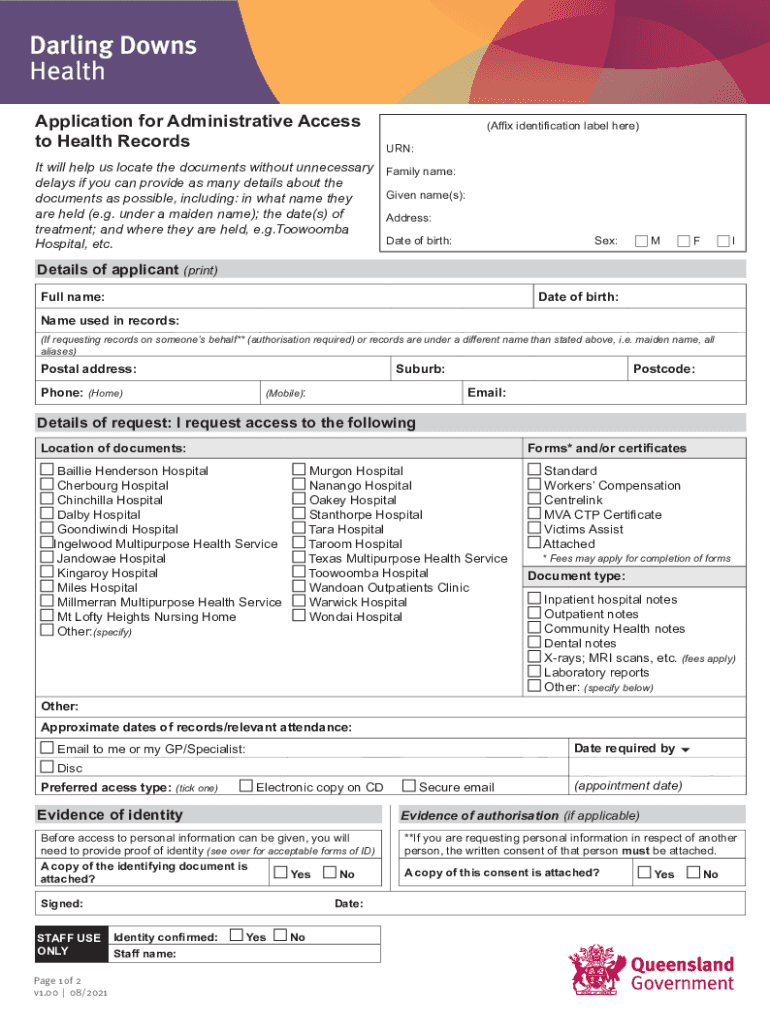 Application for Administrative Access to Health Records It will help us locate the documents without unnecessary delays if you can provide as many details about the documents as possible, including: