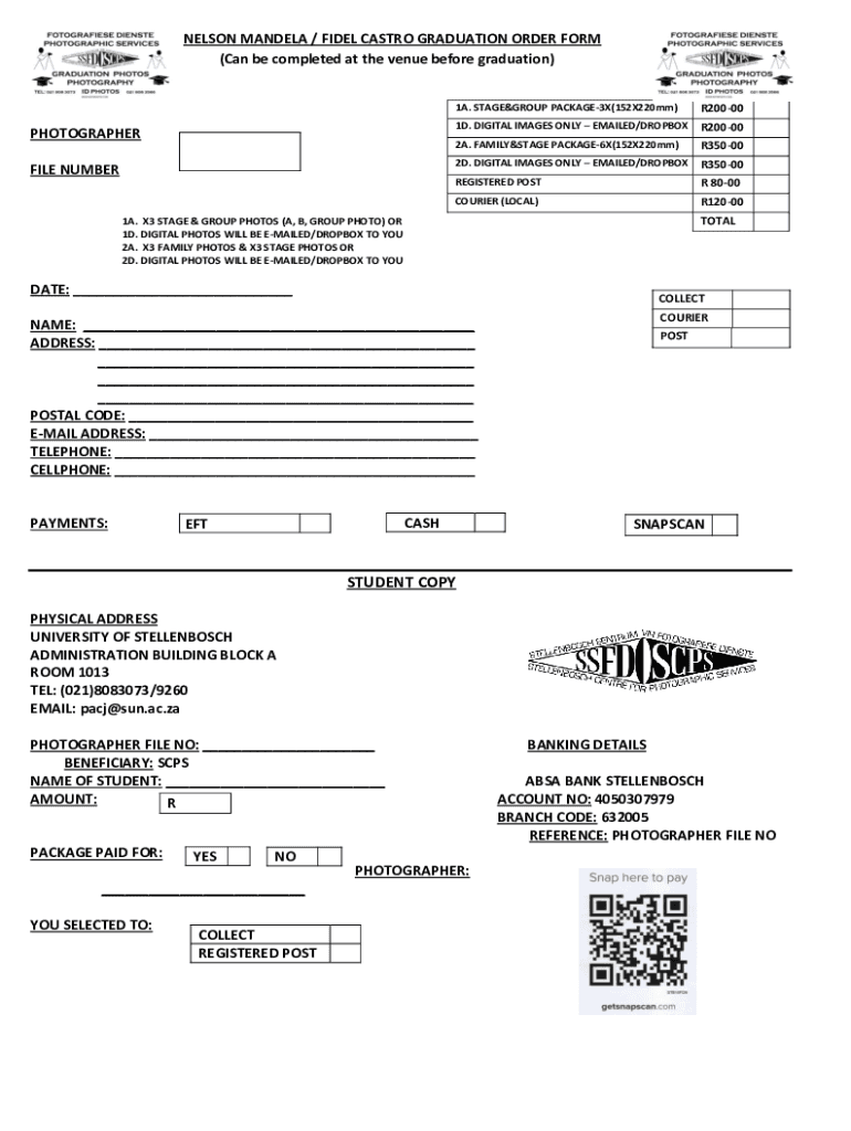 NELSON MANDELA / FIDEL CASTRO GRADUATION ORDER FORM