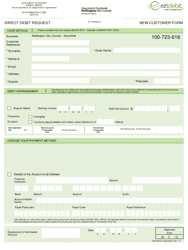 AUTHORITY TO ACCEPT DIRECT DEBITS (not to operate as an assignment or agreement) Authorization CODE 0227418Ph: 044994444DIRECT DEBIT REQUESTED CUSTOMER Formulas complete this form using a BLACK PEN.