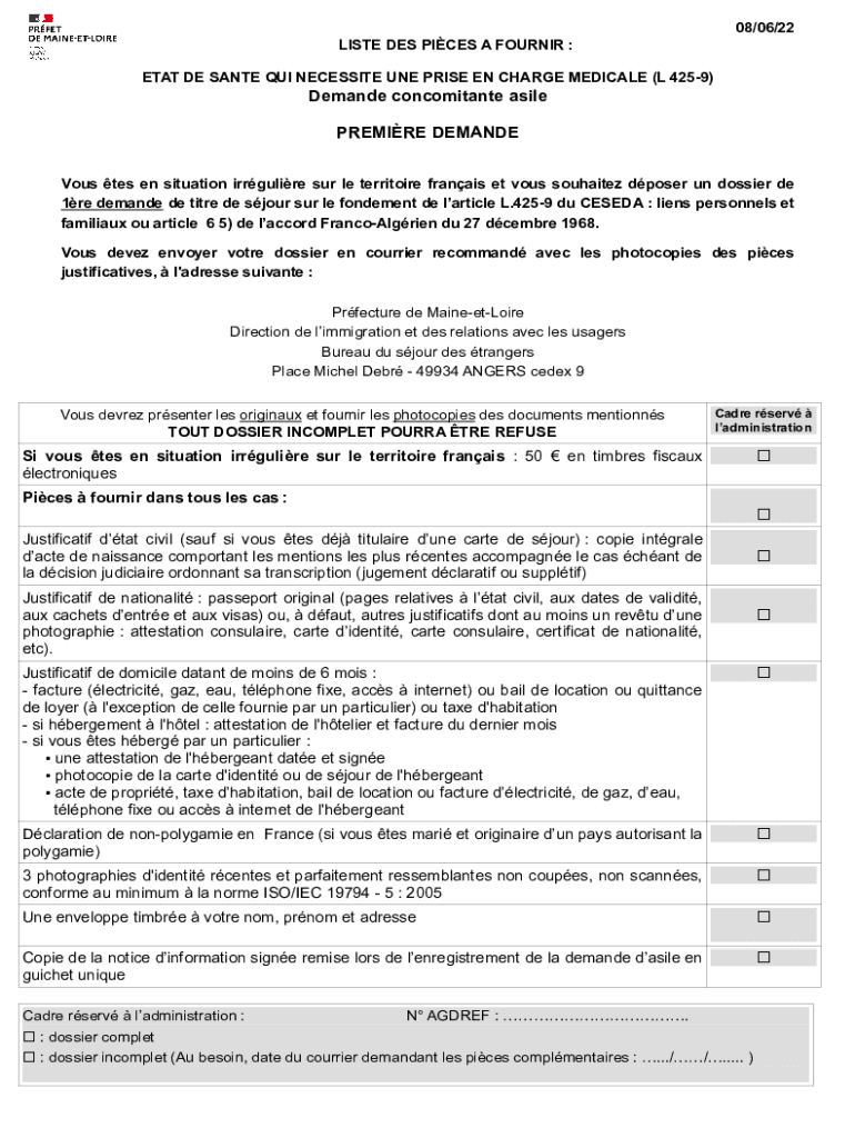 08/06/22 LIST DES PIECES A FOUR NIR : ETA TDE SANTA QUIT NECESSITY ONE PRICE EN CHARGE MEDICAL (L 4259)Demand concomitant aside PREMIERE DEMAND Vows TES en situation irregular SUR LE territory Francis