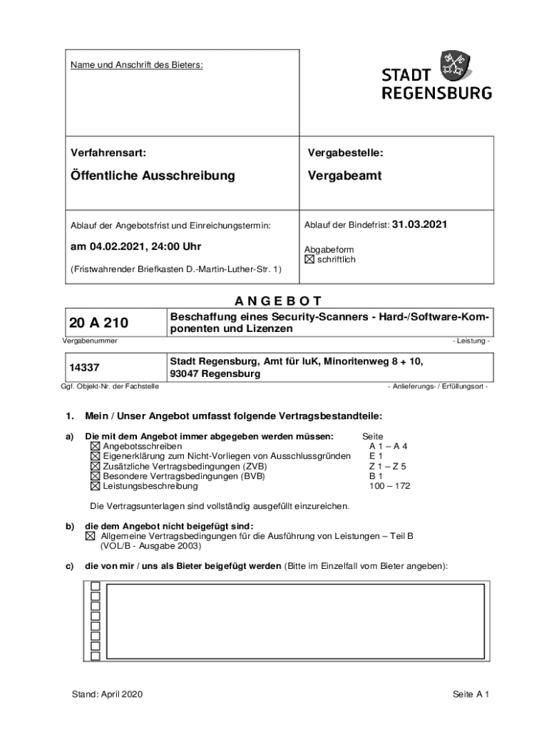 Verfahrensart:Vergabestelle:ffentliche AusschreibungVergabeamtAblauf her Angebotsfrist UND Einreichungstermin:Ablaze her Binders: 31.03.2021am 04.02.2021, 24:00 UhrAbgabeform