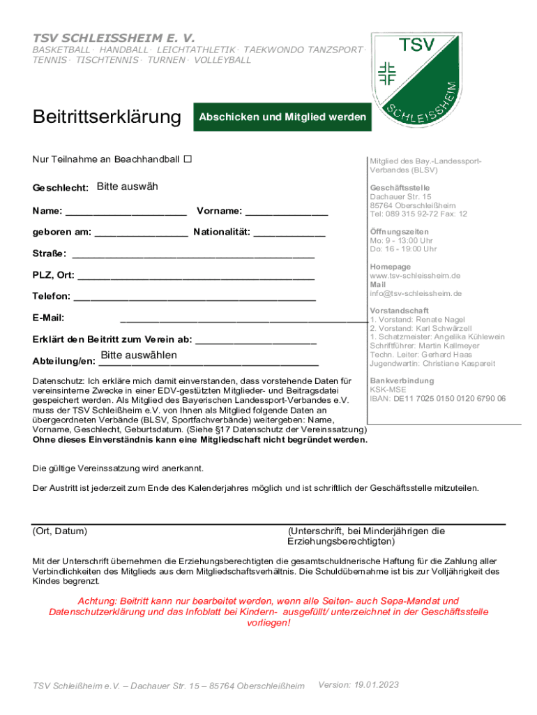 TENNIS TISCHTENNIS TURNED VOLLEYBALLBeitrittserklrung