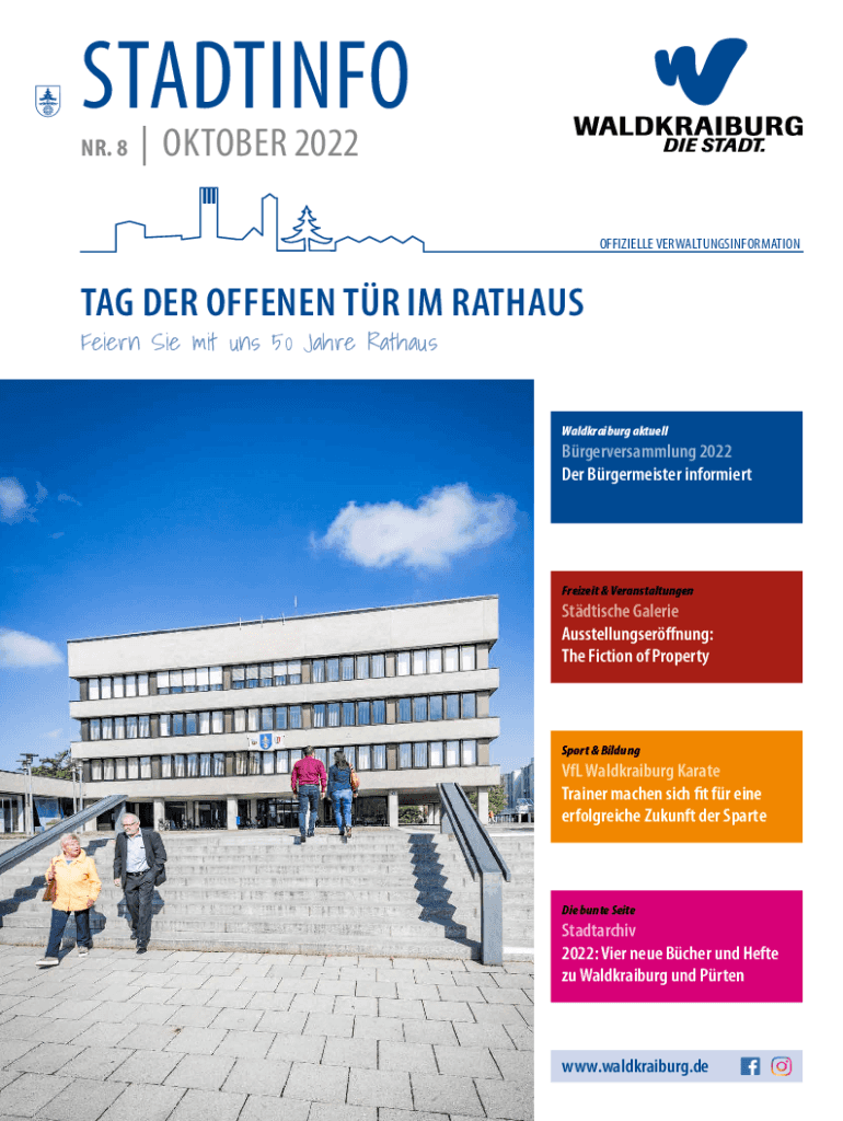| OCTOBER 2022NR. 8OFFIZIELLE VERWALTUNGSINFORMATIONTAG HER OFFERED TR IM RATHAUSFeiern Si emit us 50 Are RathausWaldkraiburg aktuellBrgerversammlung 2022