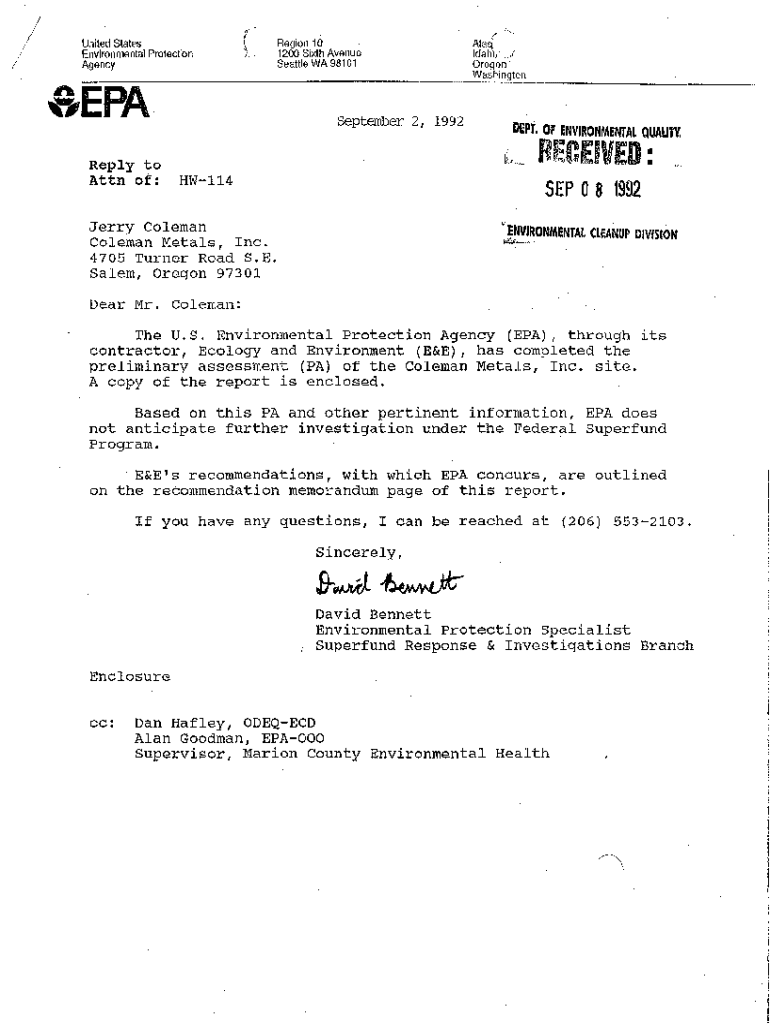 Washington September 2, 1992DEPT. OF ENVIRONMENTAL QUALITY\'l;,