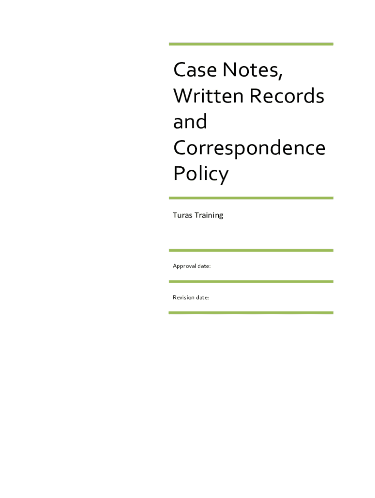 Case Notes, Written Records and Correspondence Policy Turns TrainingApproval date:Revision date:Project Name Case Notes, Written Records and Correspondence Policy1. Statement 1.1. TURNS is committed