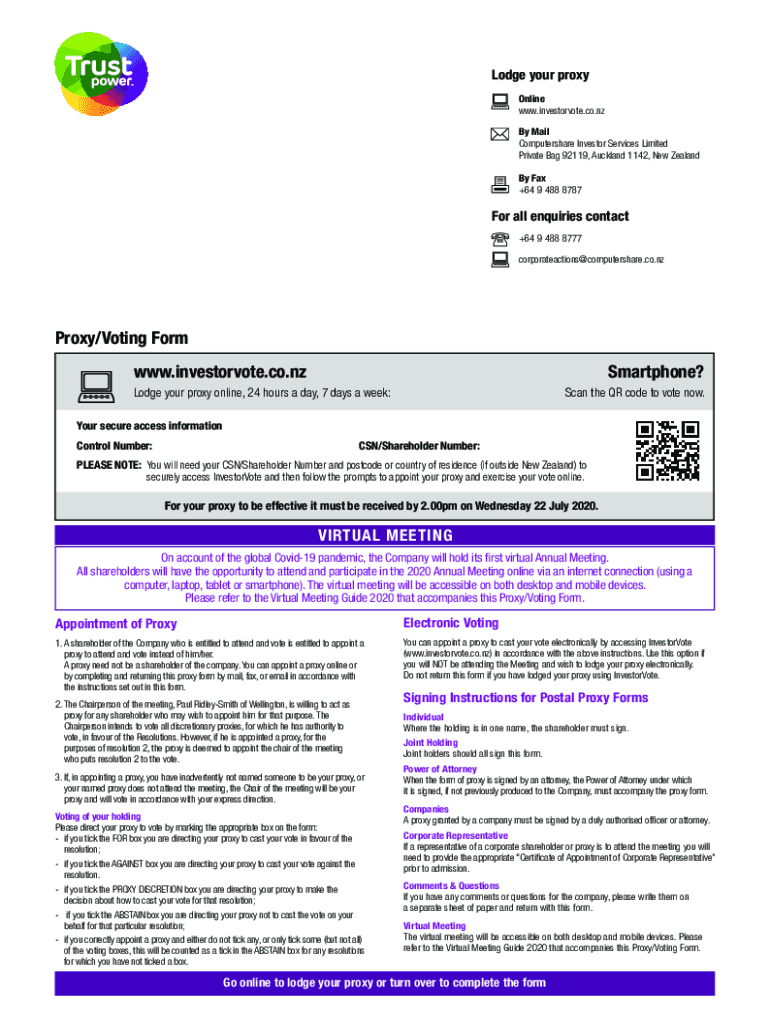 Lodge your proxy Online www.investorvote.co.nz By Mail Computer share Investor Services Limited Private Bag 92119, Auckland 1142, New Zealand By Fax +64 9 488 8787For all inquiries contact +64 9 488