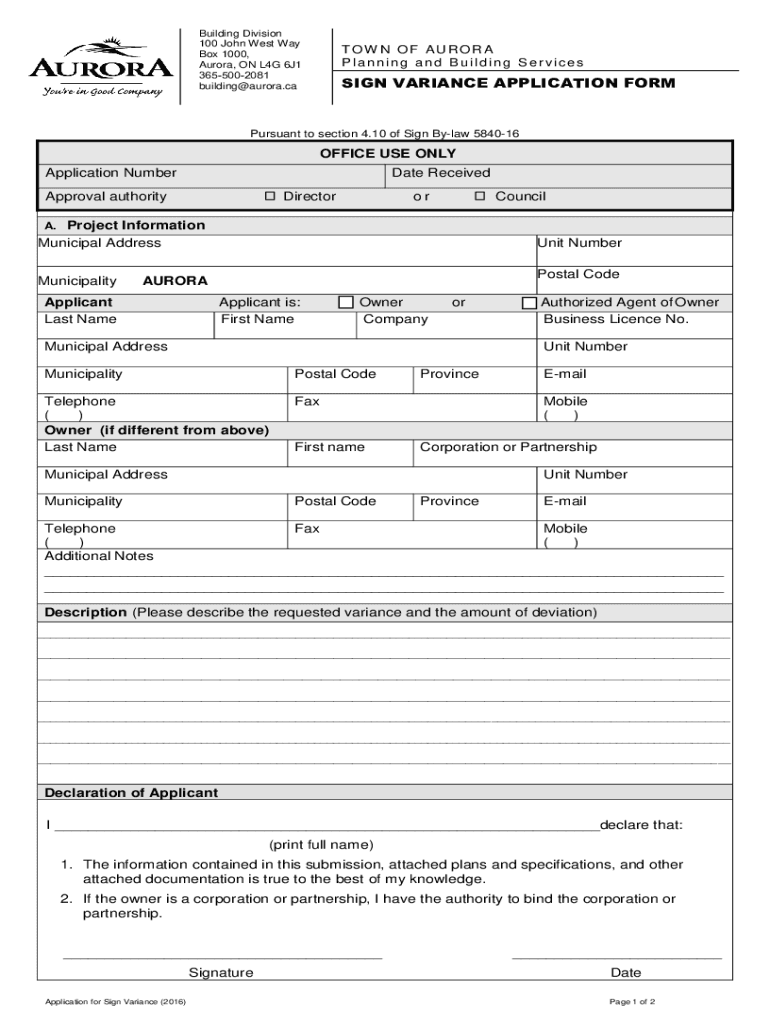 Planning and Building ServicesSIGN VARIANCE APPLICATION FORMPursuant to section 4.10