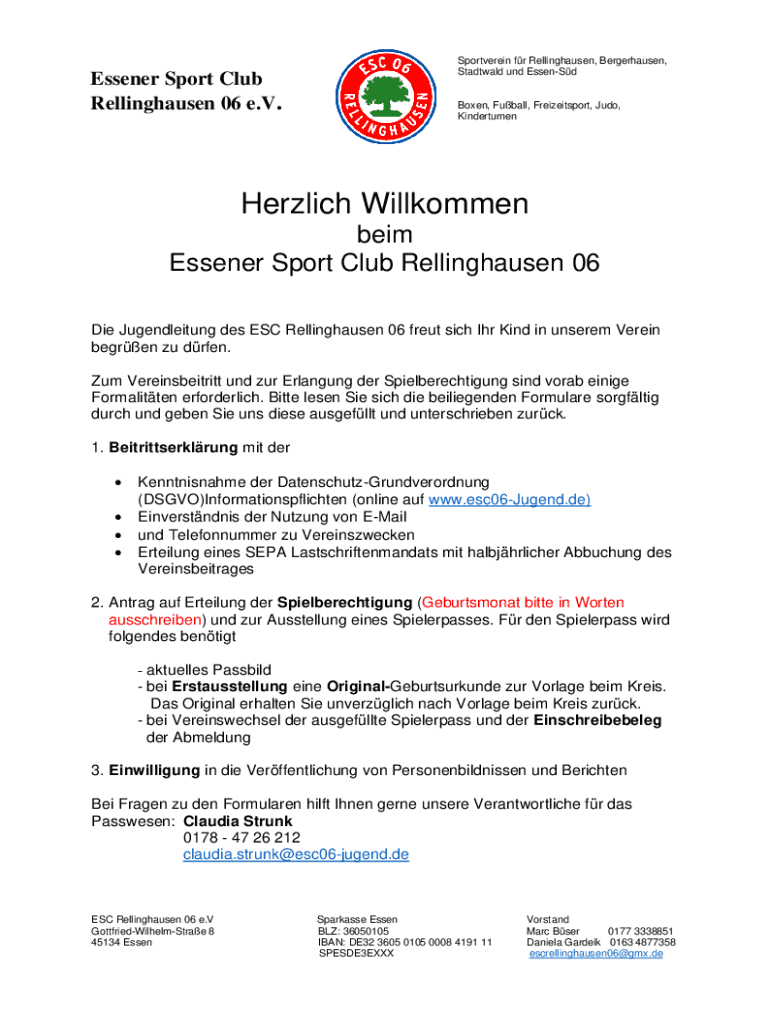 The paperwork for Essener Sport Club Rellinghausen can be filled out online or submitted in person at the club's office.