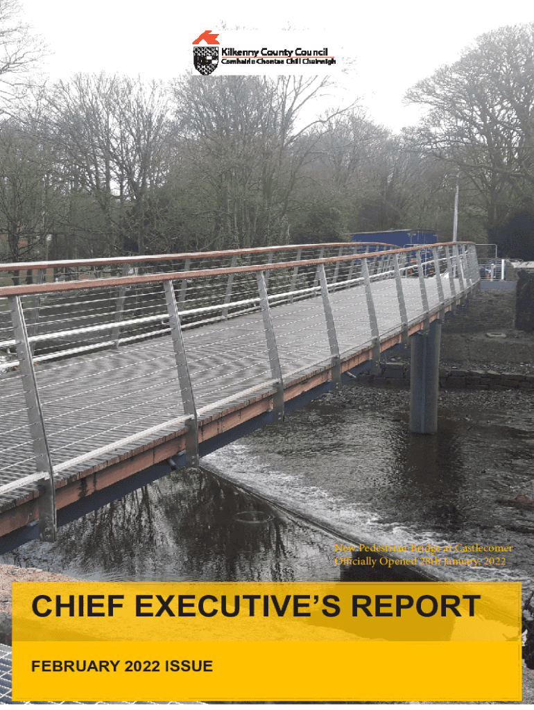 New Pedestrian Bridge at Castle comer Officially Opened 28th January, 2022CHIEF EXECUTIVES REPORT FEBRUARY 2022 ISSUE 1To: Each Member of Kenny County CouncilMonthly Management Report to Members of
