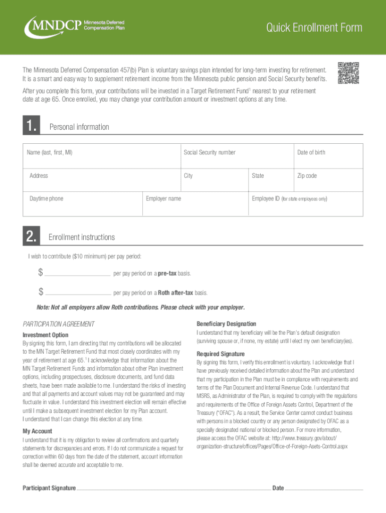 Quick Enrollment Forth Minnesota Deferred Compensation 457(b) Plan is voluntary savings plan intended for long term investing for retirement. It is a smart and easy way to supplement retirement income